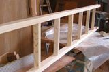 I got my sister to varnish the parts as I was making them. Here she's varnishing the front support, with the holes for the joists. The water based varnish dries quickly, so we were able to get two coats onto it without holding up building the loft too much. its a heck of a lot easier varnishing the parts than it is to varnish once its built.
