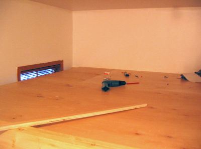 The loft with the plywood installed, as seen from below. It was getting later in the day by this time,