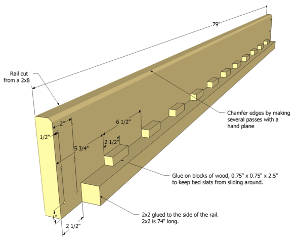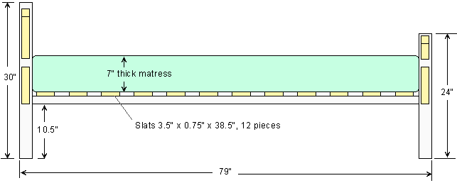 | 2x8 x 8' | 3 * | Side rails, also bottom horizontal for headboard and footboard.