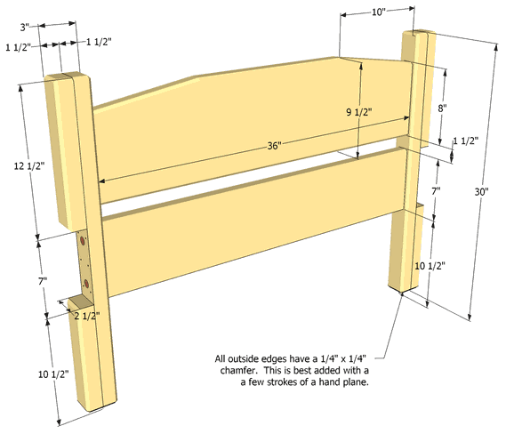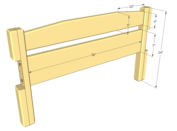 | 2x10 x 8' | 1 * | For headboard top horizontal, and footboard top horizontal