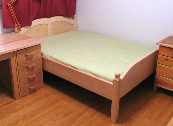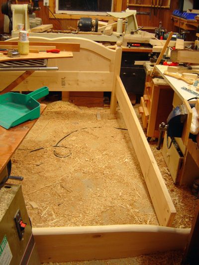 This is a photo of the first time I assembled the bed frame. In my old garage workshop,