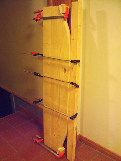 This picture shows gluing the footboard. The footboard is too wide to make out of one piece
