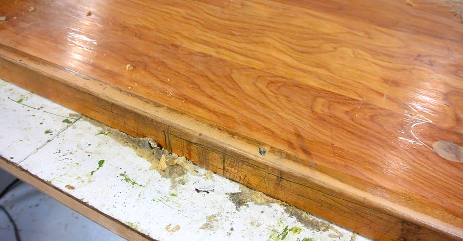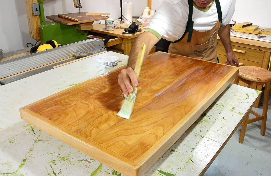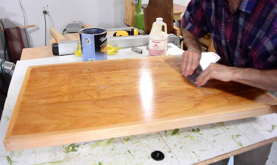 Here I'm re-varnishing the top for a dresser. The old varnish was an oil