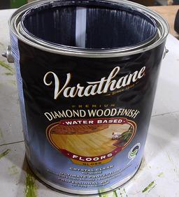 The varnish I use most often is this water based Varathane diamond floor varnish.