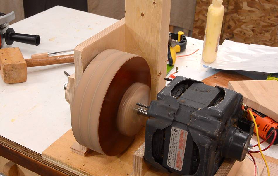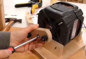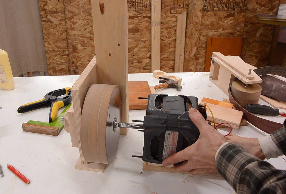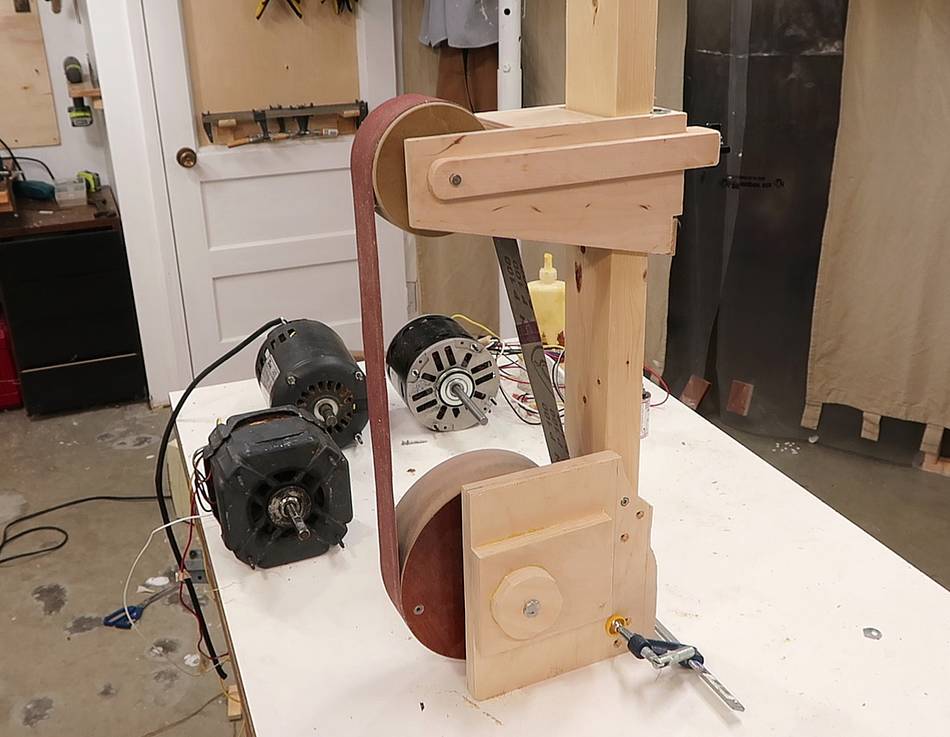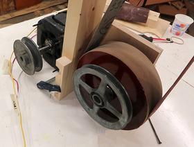 The way the motor is coupled to the lower wheel is complicated. I should have just mounted the lower wheel directly to the motor shaft. And it's because of these flaws that I never drew a set of plans for it. A belt grinder is a metal working tools, and metal workers prefer to make their tools out of metal, naturally.