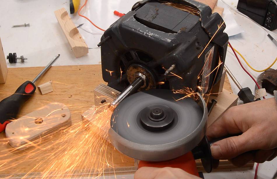 I decided to use this old washer motor, which has the feature of being able to run at 1750 and 1150 RPM (it has 4-pole and 6-pole windings).