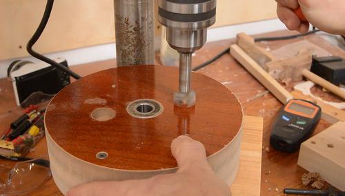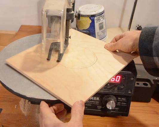 A panel will go on the right side, but it needs to have a hole big enough for the yoke to fit through. I used the yoke itself to mark the circle, then cut that out with a scroll saw.