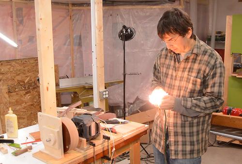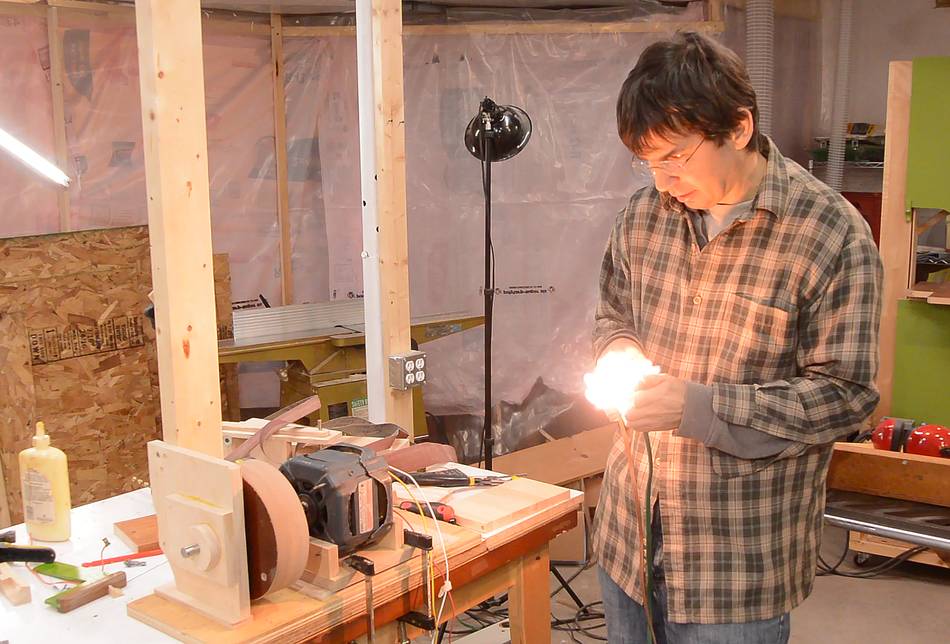 At the end of the video, and in the last picture above, I'm grinding a sharp point on a long nail. On a whim, I later made a handle for that to use it as an awl, and painted it green. That awl is one of the ones I show here making fun of the Jimmy Diresta ice pick.