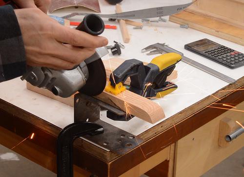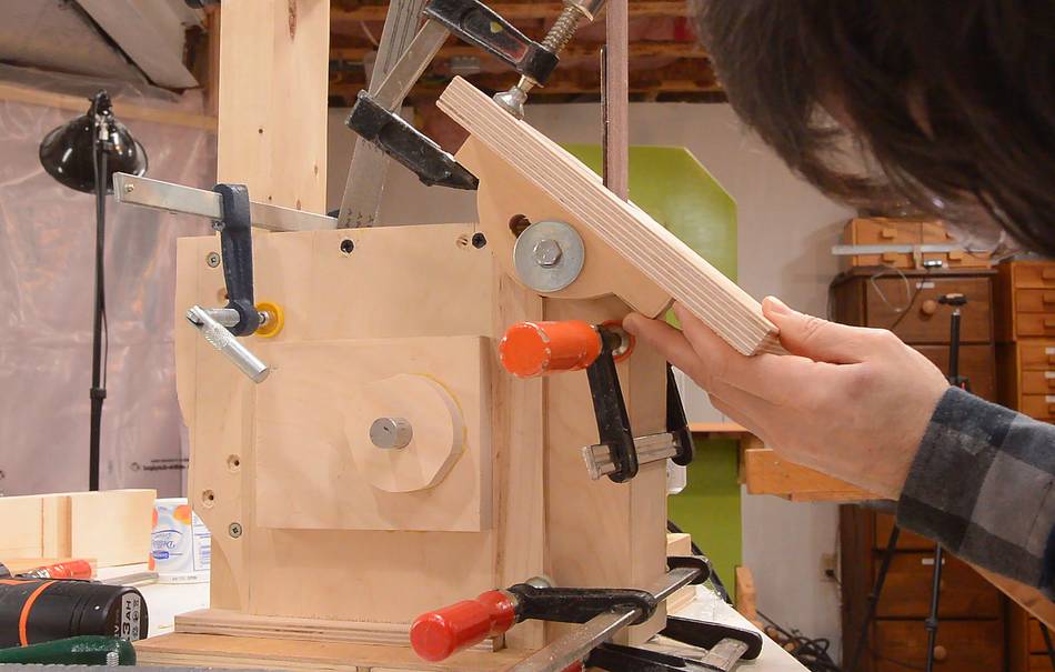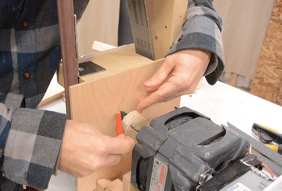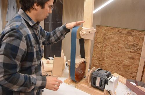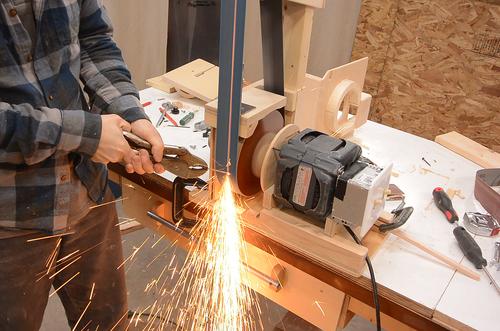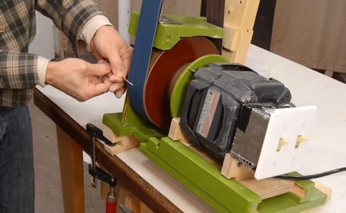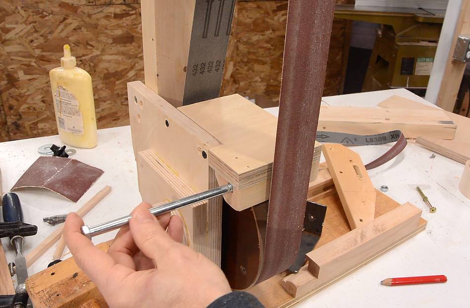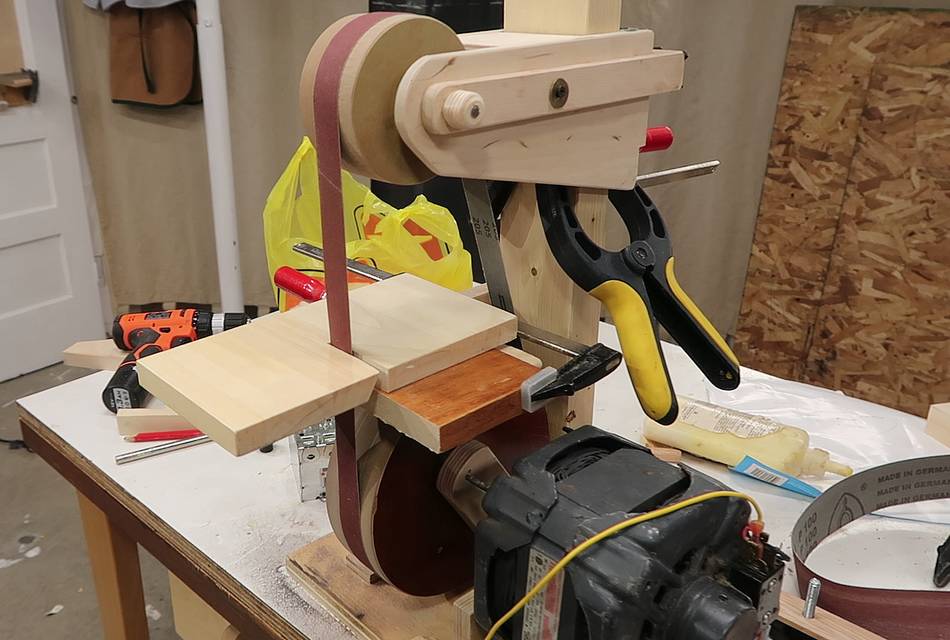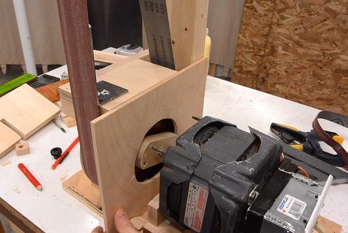 Now with a 1x42" sanding belt. I clamped a piece of wood