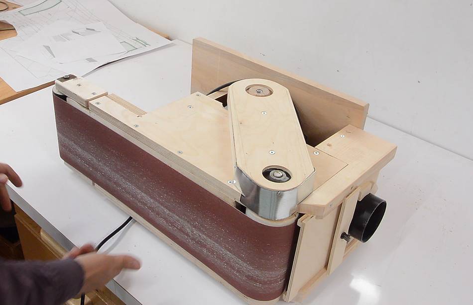 But I realized this meant the belt would move right to left, instead of left to right like it normally does on edge sanders. More importantly, the dust collector port would move to the left, which would mean re-routing the hose every time I flipped it.