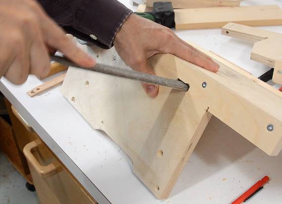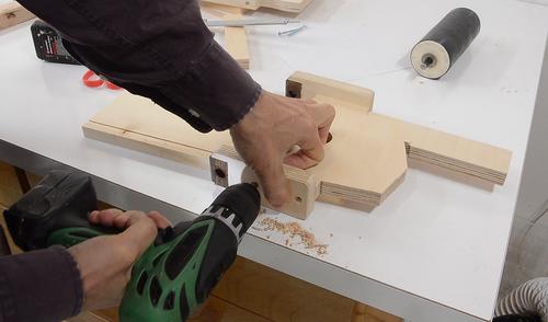 hole in the plywood (about 0.8 mm smaller than the bolt). I just screwed the bolt