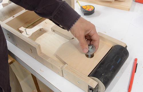 The tracking adjust knob will go through the frame of the sander. Because it needs to