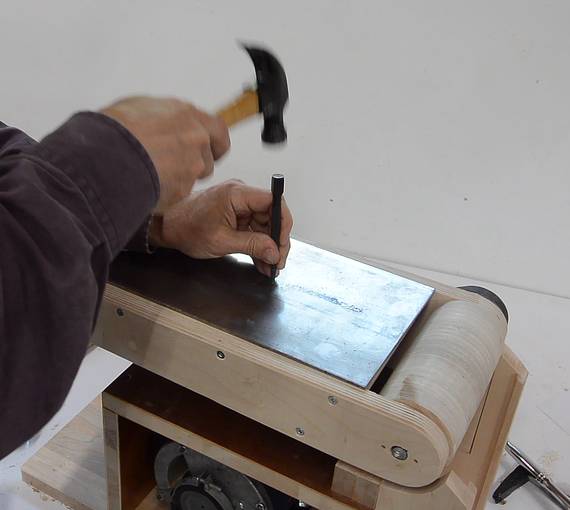 Then placing the platen back on the sander and using a center punch to mark the pilot hole locations.