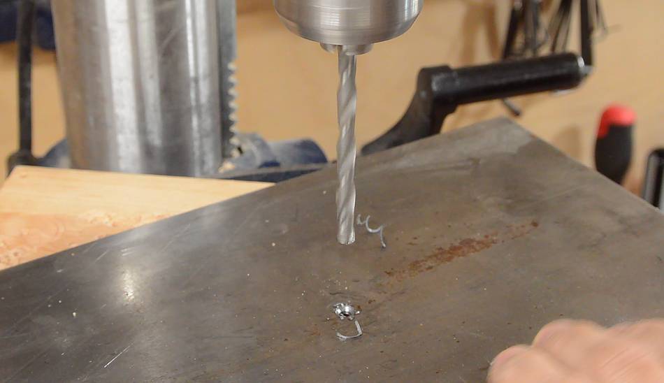 Then drilling a small hole, plus a larger hole part-way to make a countersink for