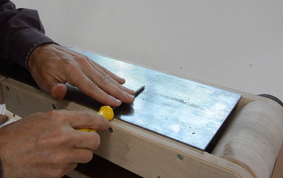 Then screwing the platen down. I'm sliding the screwdriver across the screw to make