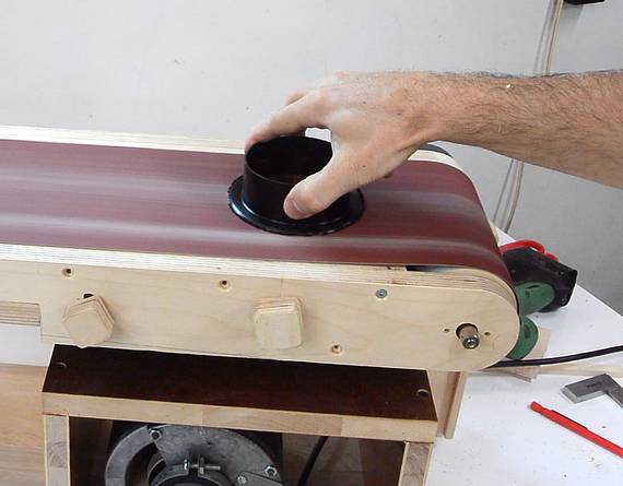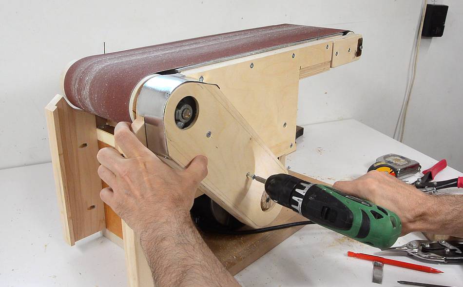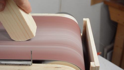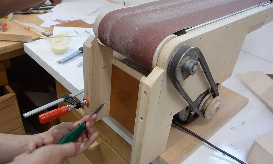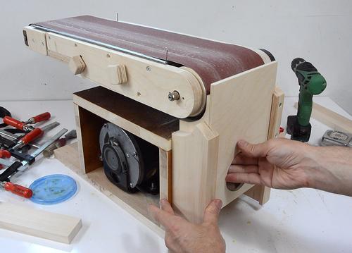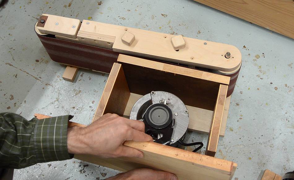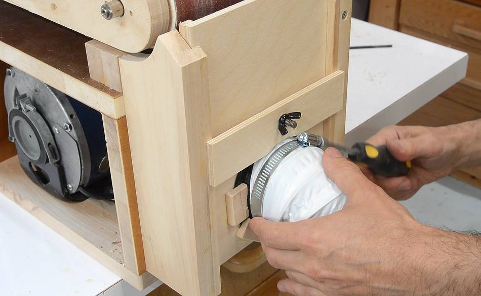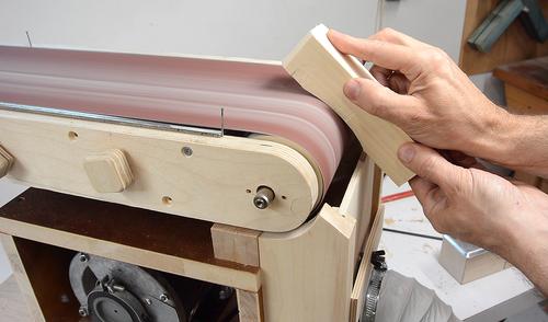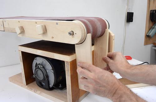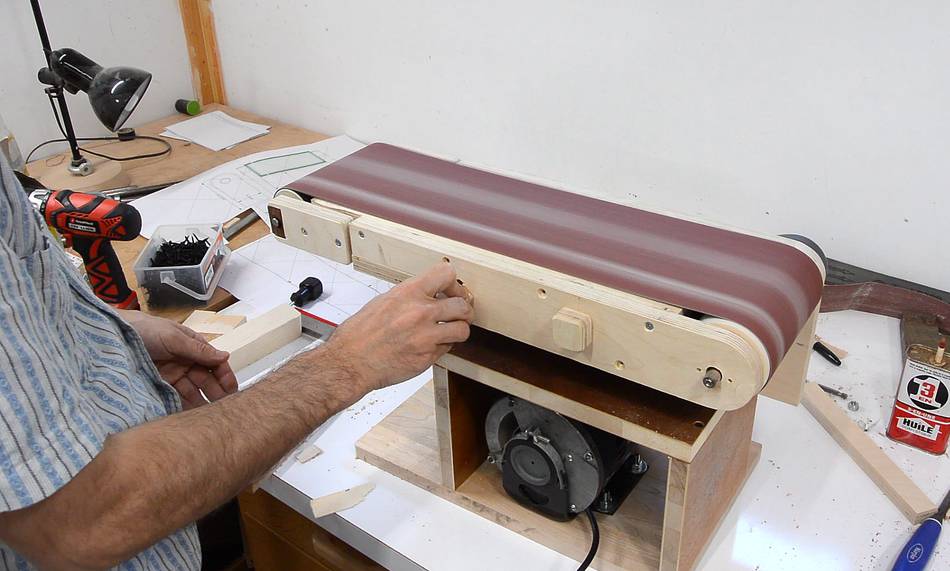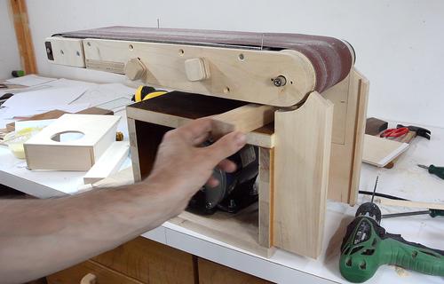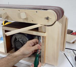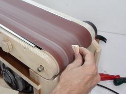 lie the sander on its side to use as an edge belt sander, an adjustable table