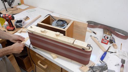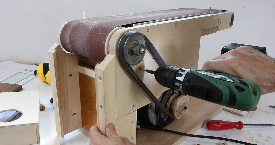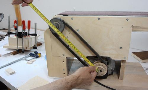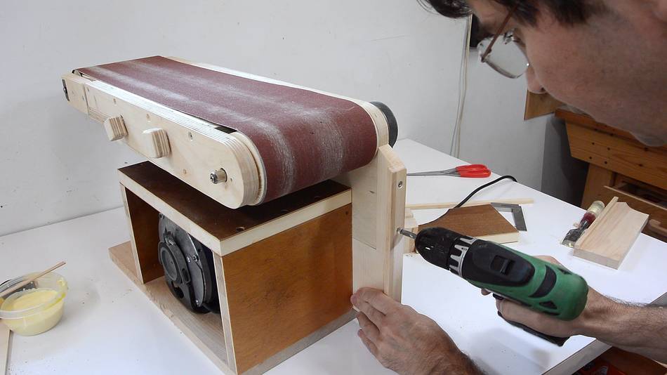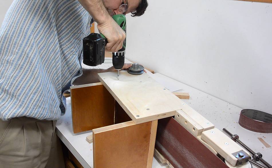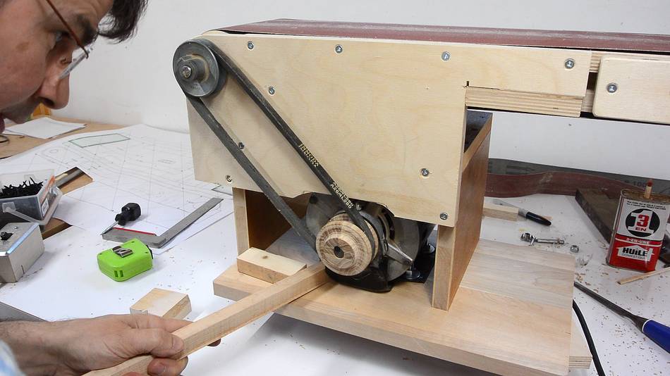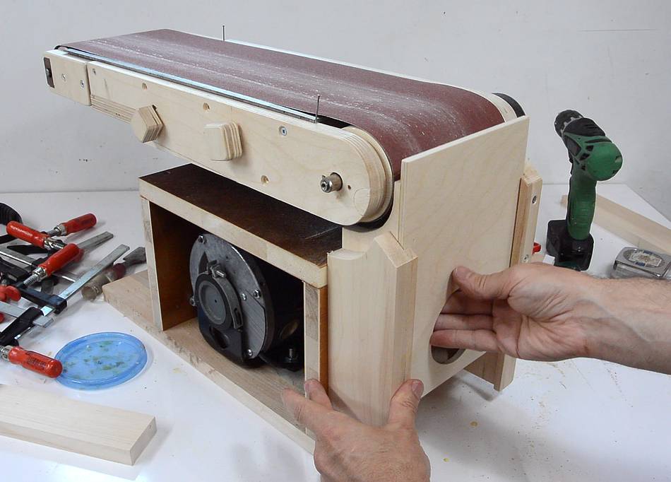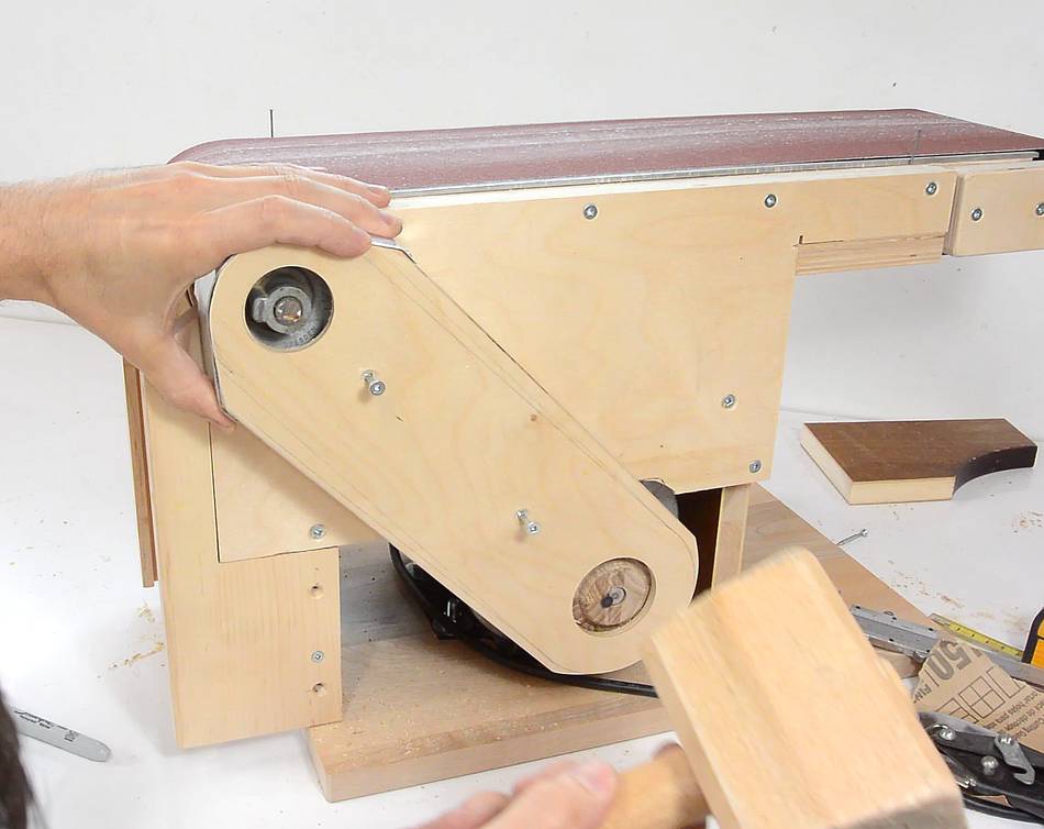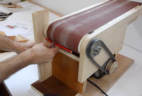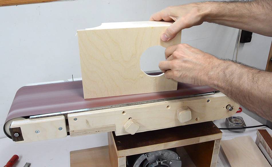 lie the sander on its side to use as an edge belt sander, an adjustable table