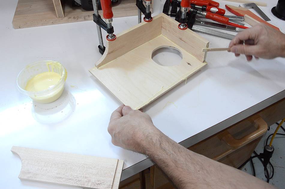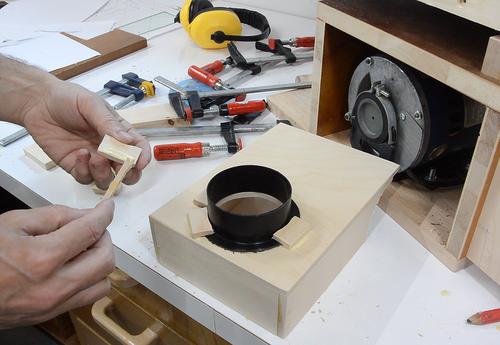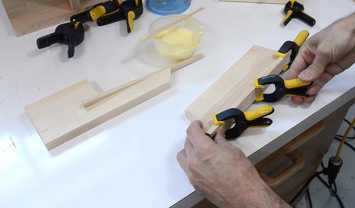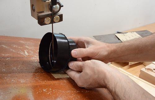 The pieces of wood have a rabbet cut in the side to accommodate the thickness of the plastic flange.