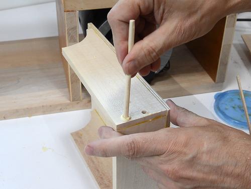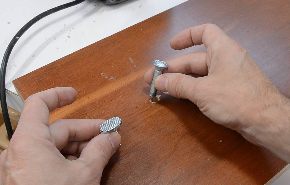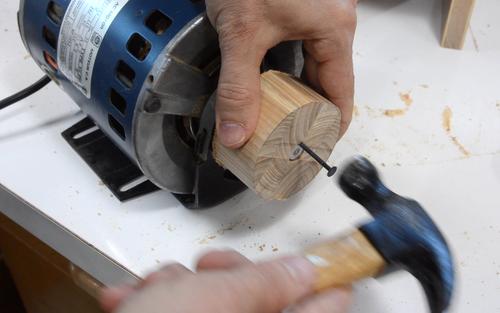 pulleys are centered in the holes. Then using a mallet to tap the screws