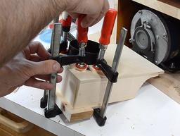 I used some small finishing nails to temporarily hold the sheet metal platen in place.