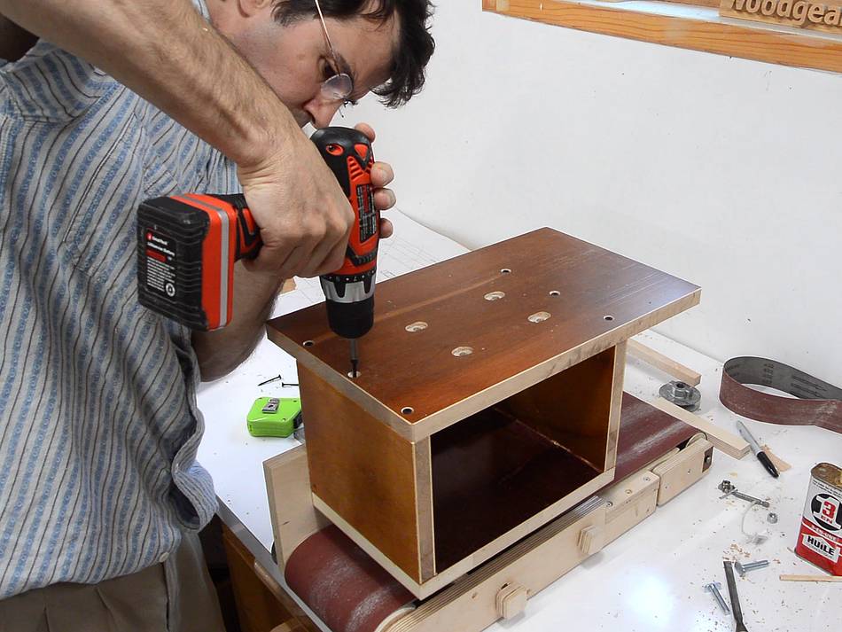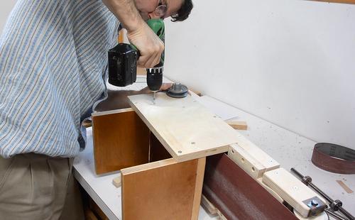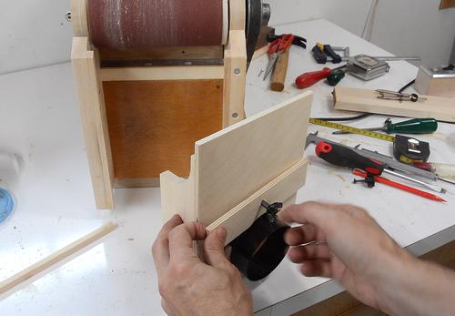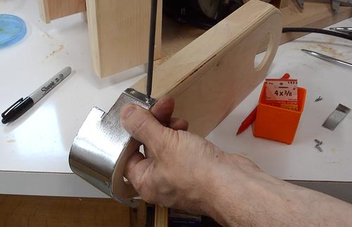 After drilling pilot holes, I was able to screw the belt guard in place.