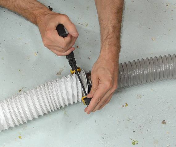I'm using a clamp to temporarily hold the 3" dryer hose to