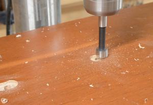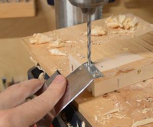 These require an elongated hole on the back, which I'm making by drilling overlapping holes with a Forstner bit.