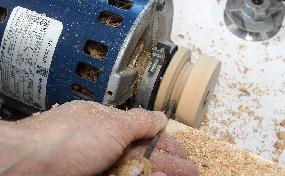 I didn't have the motor clamped down firmly enough, and the motor's mount is also a bit "springy", so there were some vibration issues. I ended up shaping much of it with a parting tool, mostly to take smaller cuts to cut down on vibration.