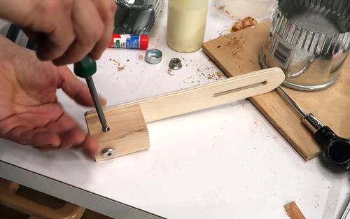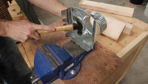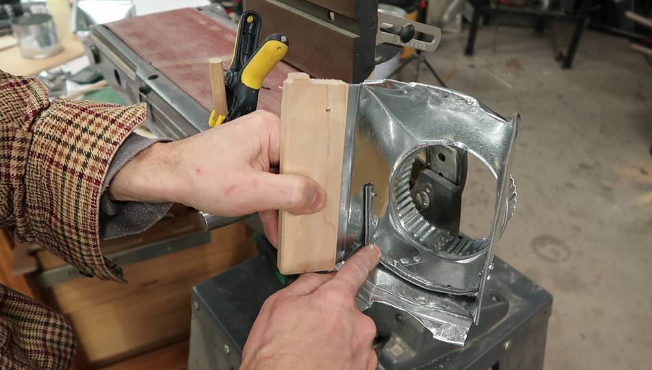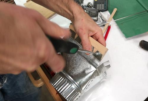 Because it's awkward to screw from inside the duct, this screw isn't actually screwed in. Instead, it locks in the block via a sort-of set screw, which I'm screwing in here.