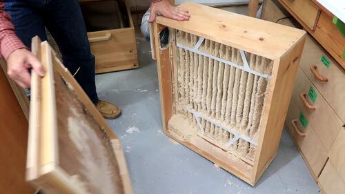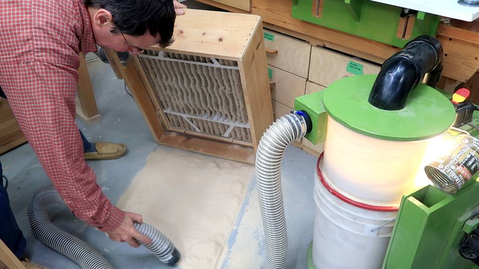 Cyclone dust collectors usually don't separate sanding dust all that well, but when sucking up a lot of dust at once, the cyclone separates most of it. Looking at the dust level in the collecting bucket, I sucked up 4-5 liters of fine dust.