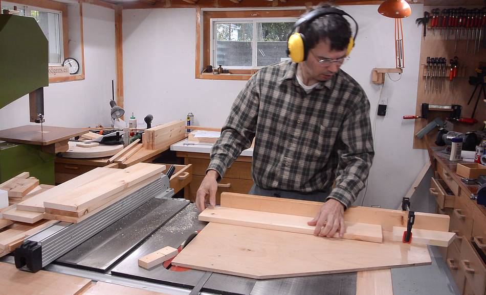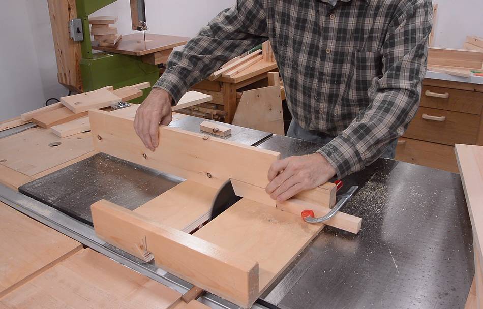 Then tilting the blade by 22.5 degrees, I use a table saw sled to