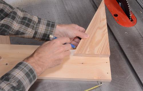 To make the triangles, I first cut the boards at a 22.5 degrees