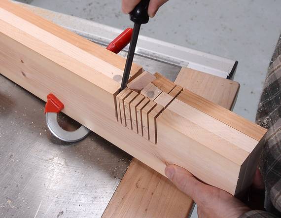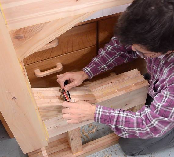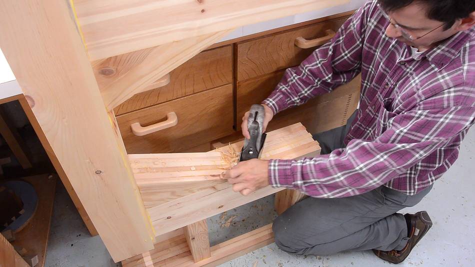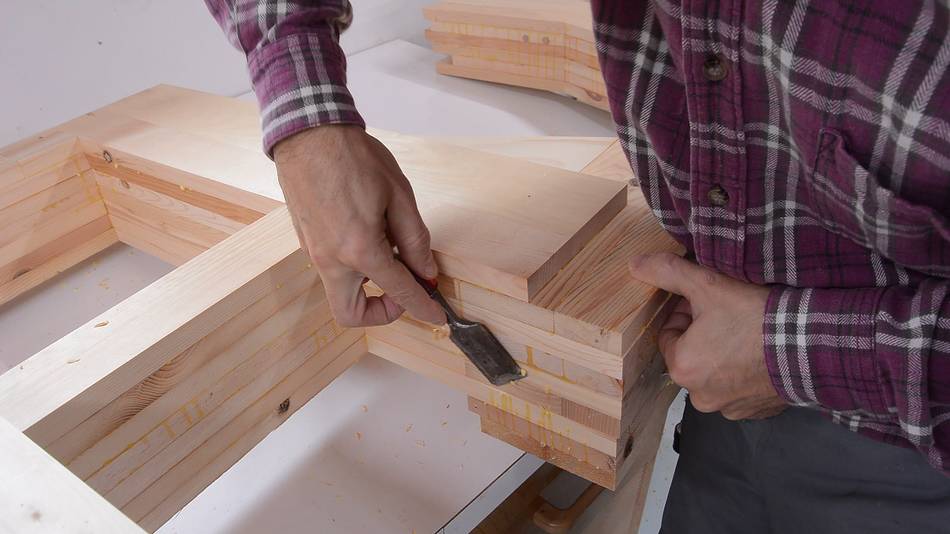 After finishing the glue-up, I clean up the bigger glue drops with a chisel