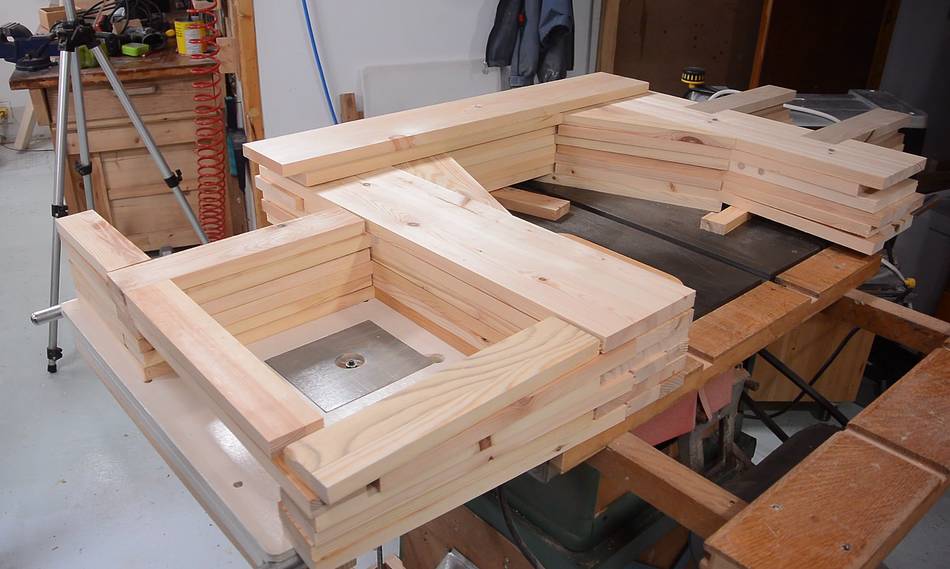 I'm gluing the frame for this bandsaw together out of lots of individual boards,