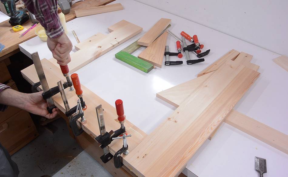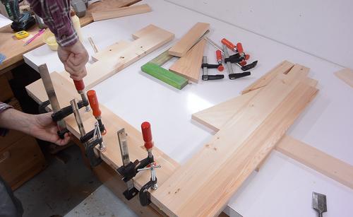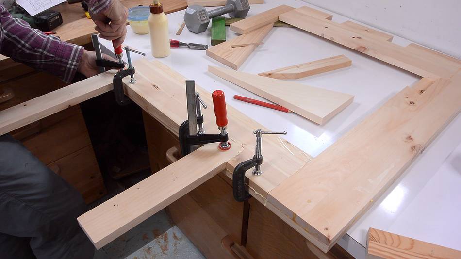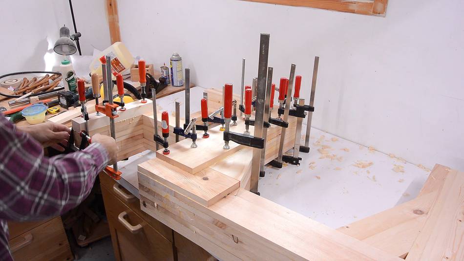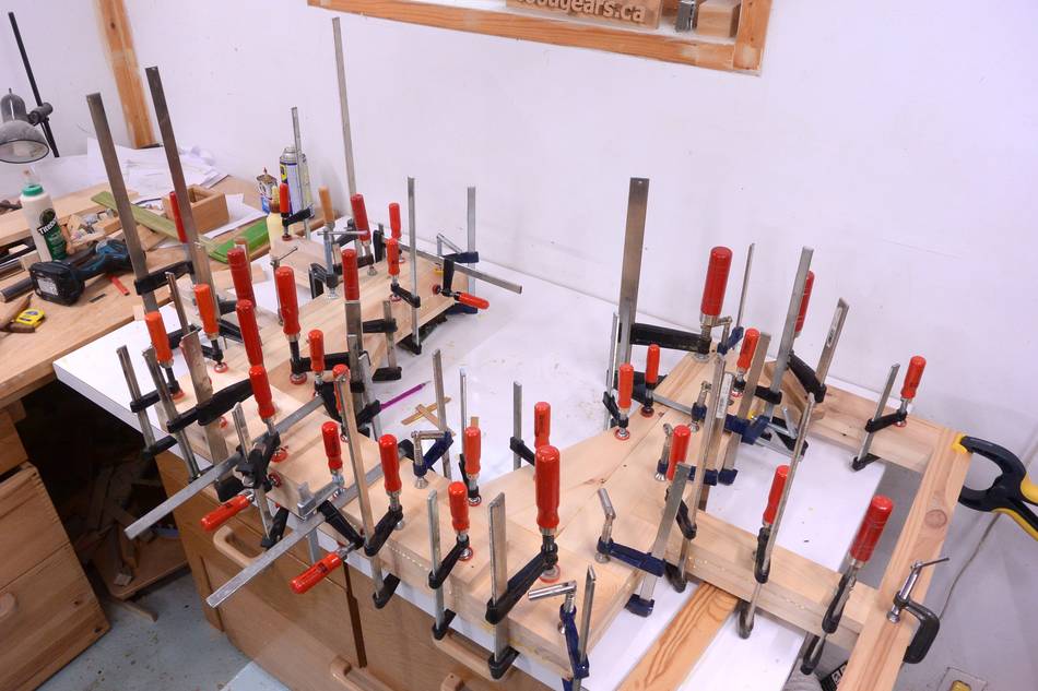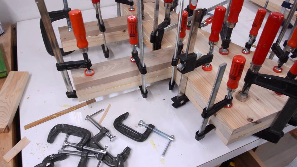Lots of gluing and clamping and gluing. Gluing up the frame takes a whole