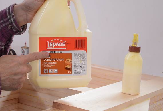 in large bottles, then fill smaller containers. For this glue-up, I filled