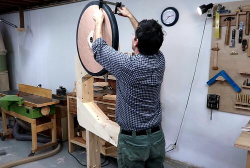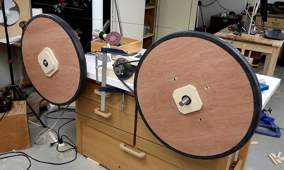The wheels are close together for their size, with less than 40 cm between them. But I figure that should leave enough space for a reasonable amount of resaw height. It's the same distance between the wheels as on my 20" bandsaw