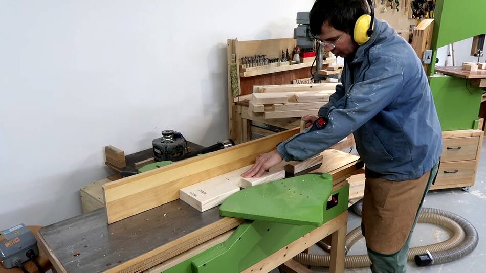 I'm trimming them together on the jointer to make sure they are smooth and consistent with each other.