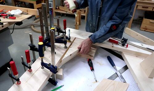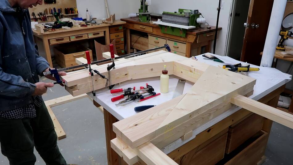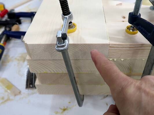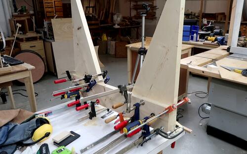 Not being able to work mornings or evenings because of kids, this meant I could only do two glue and clamp cycles per day, so the glue-up stretched out over several days.