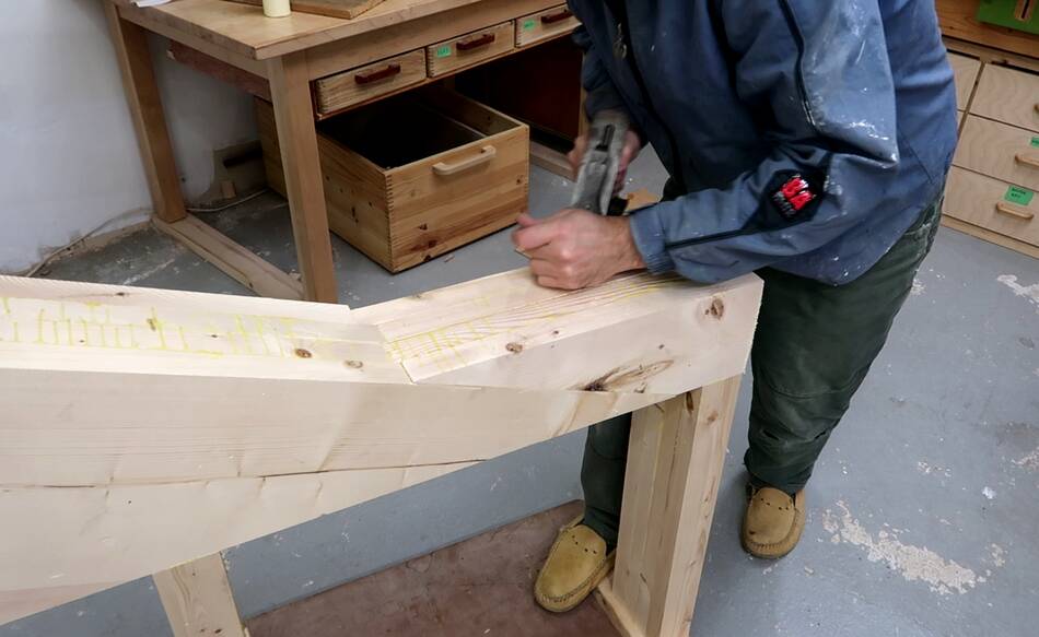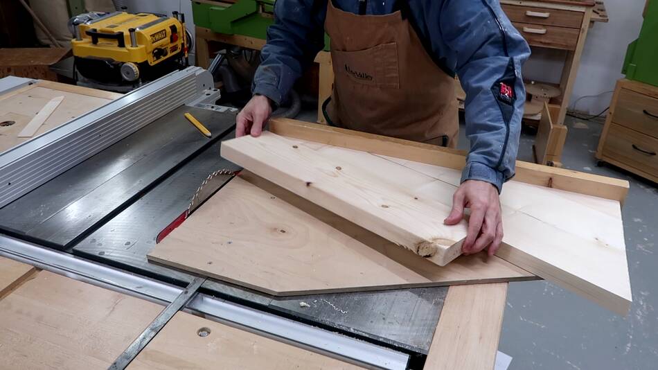 Using the last of the four big triangles to cut a 2x6 at an angle to make