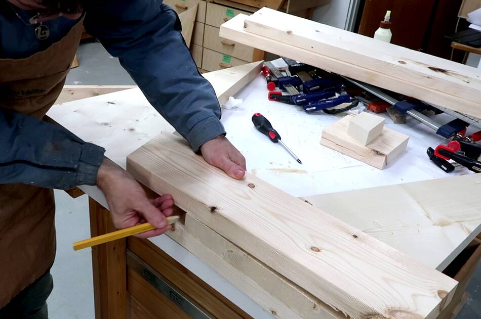I started by cutting pieces of 2x6 (38x140 mm) to the appropriate lengths.