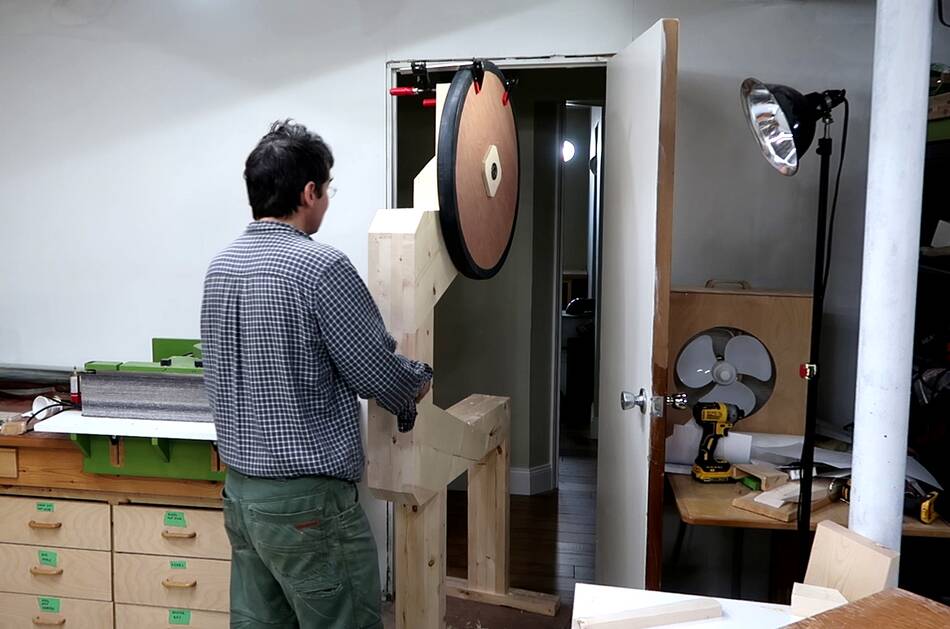 Screwing some pieces of 2x4 to the bottom of the legs.