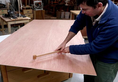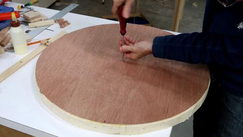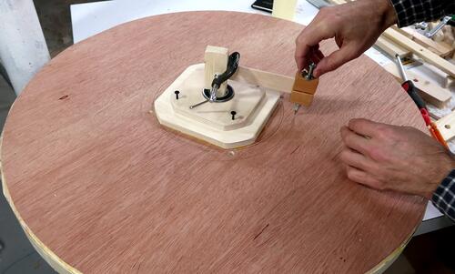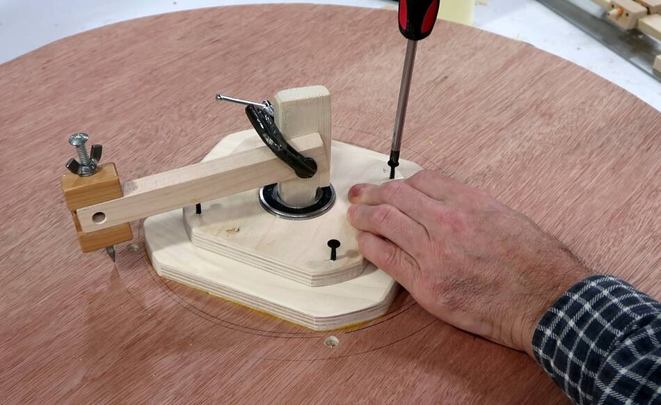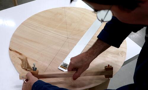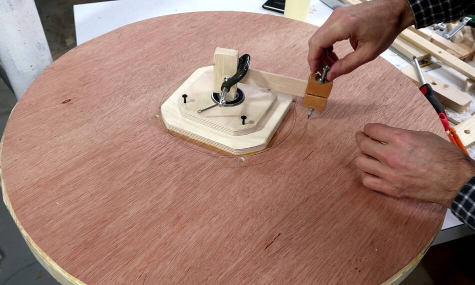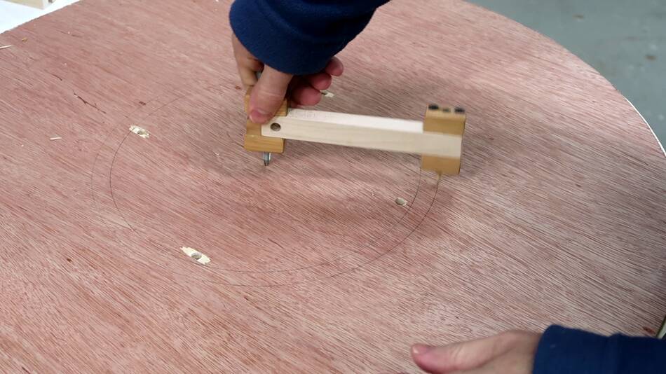 of plywood with my beam compass.