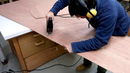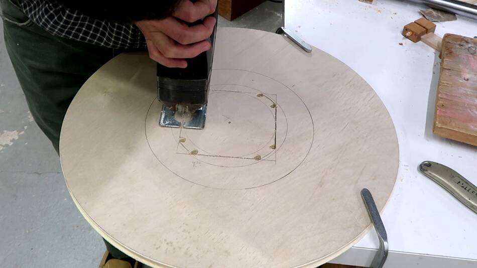 Then rough cutting the circles out with a jigsaw, and finishing