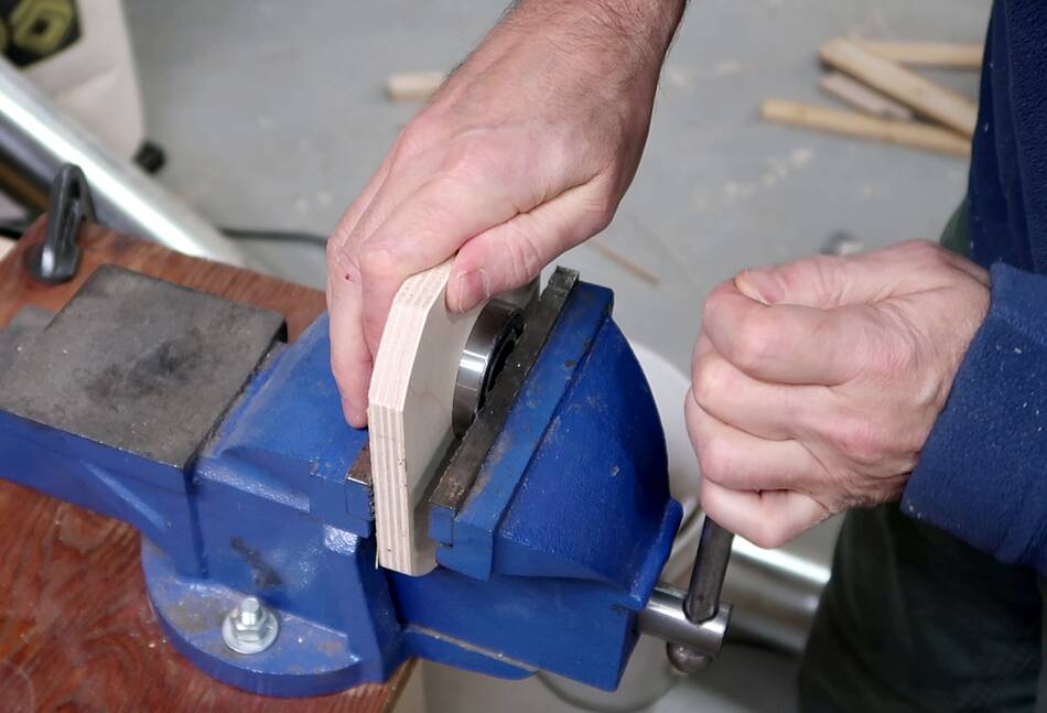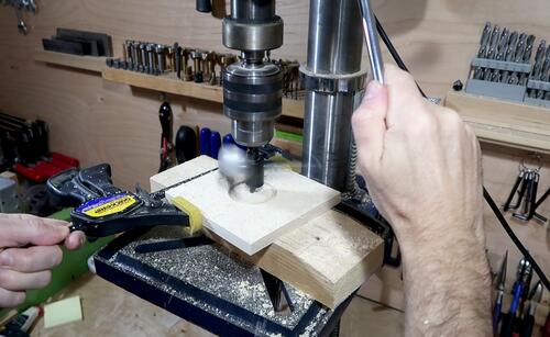 Then with a piece of wood clamped to my workbench as a tool rest, I started