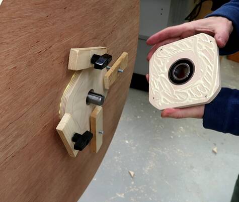 Using these four bolts, and some threaded knobs, I glued a flange to the