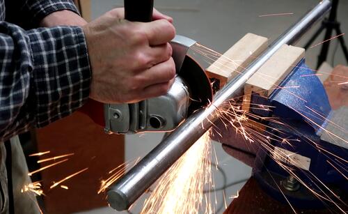 I used a sharpie to mark my cut all the way around to make sure I'd get it square, then cut from one side, turned the shaft 90 degrees, kept cutting, turned it again, and finished the cut.