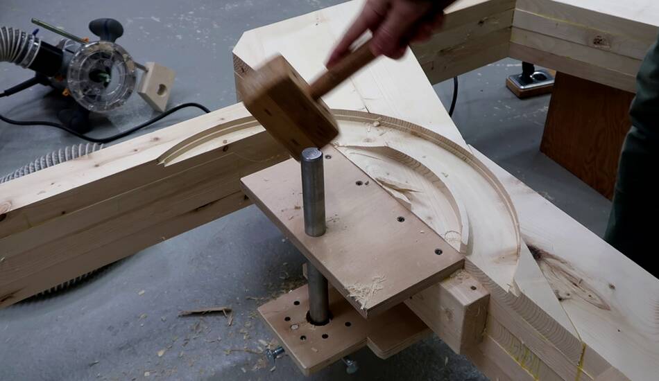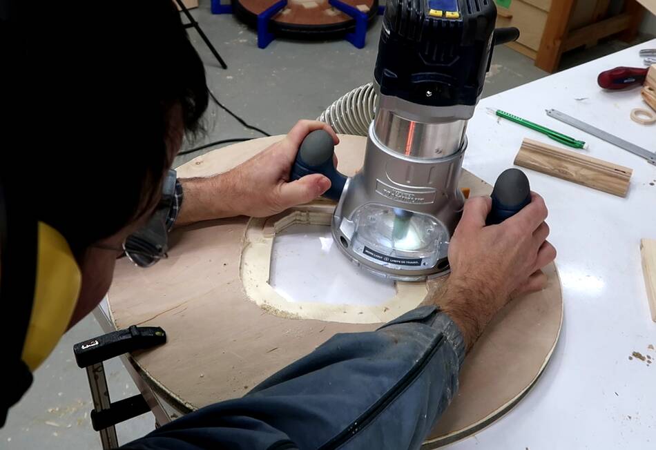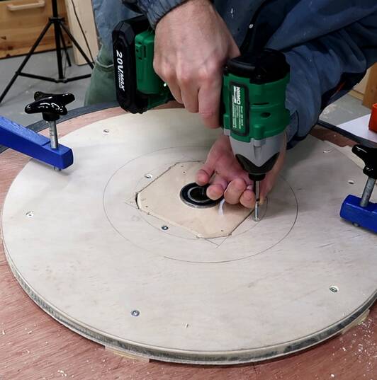 I rigged up a simple sort of circle jig to route out that cavity....