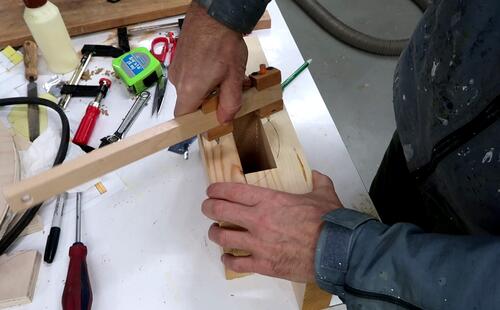 To the right, you can see the mounting bracket being glued up.
