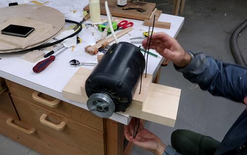 I then bent the wire around the motor and bent two hooks onto the end of it.